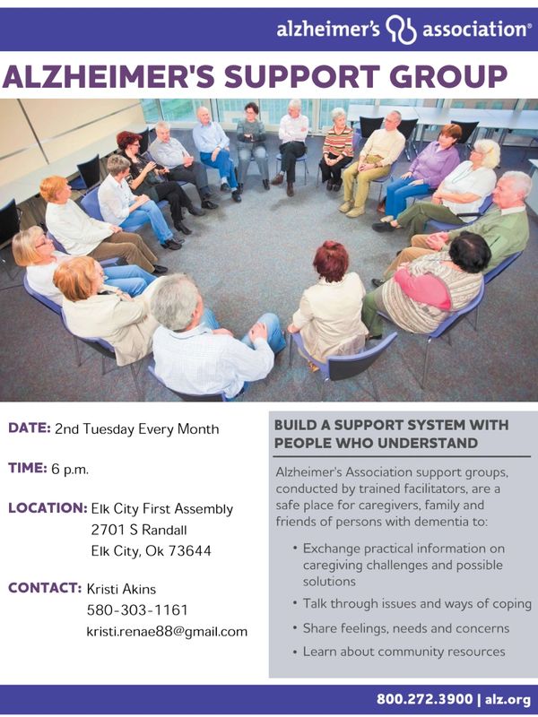 We meet once a month to talk about raising awareness, to offer resources and just to visit about the ongoing journey we all face everyday. If you would like to join our group, please contact Kristi Akins 580-303-1161.